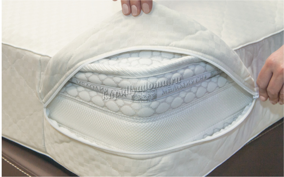 Стеганый на синтепоне чехол из хлопкового жаккарда на молнии. Продлит срок службы матраса, со всех сторон надежно защищая от загрезнений и пыли.