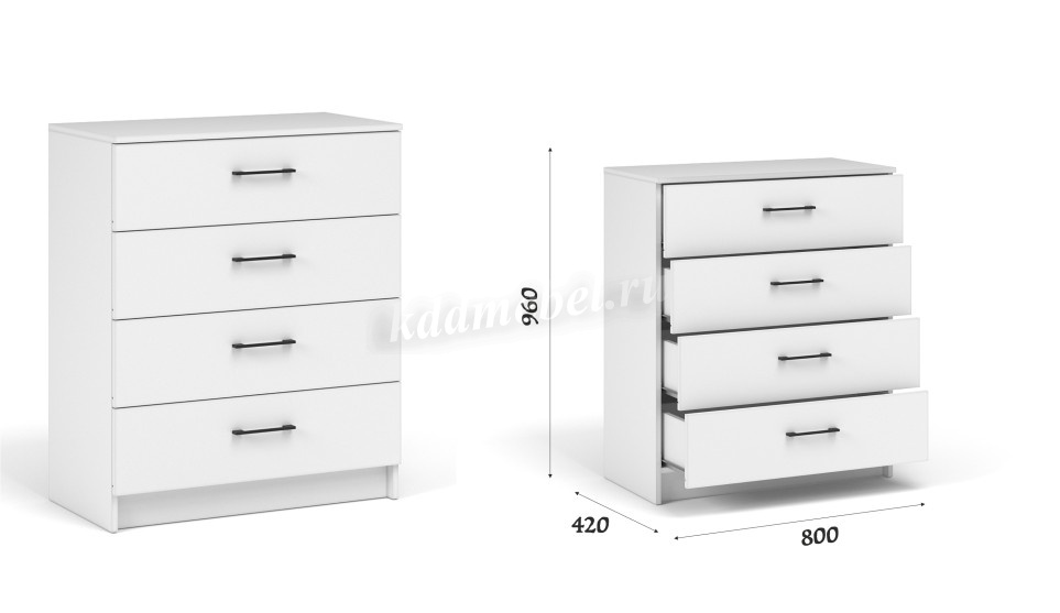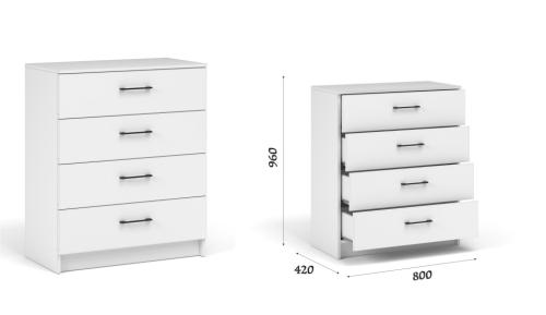 Описание Комод 4 ящ. Чикаго Вайт (Белый)