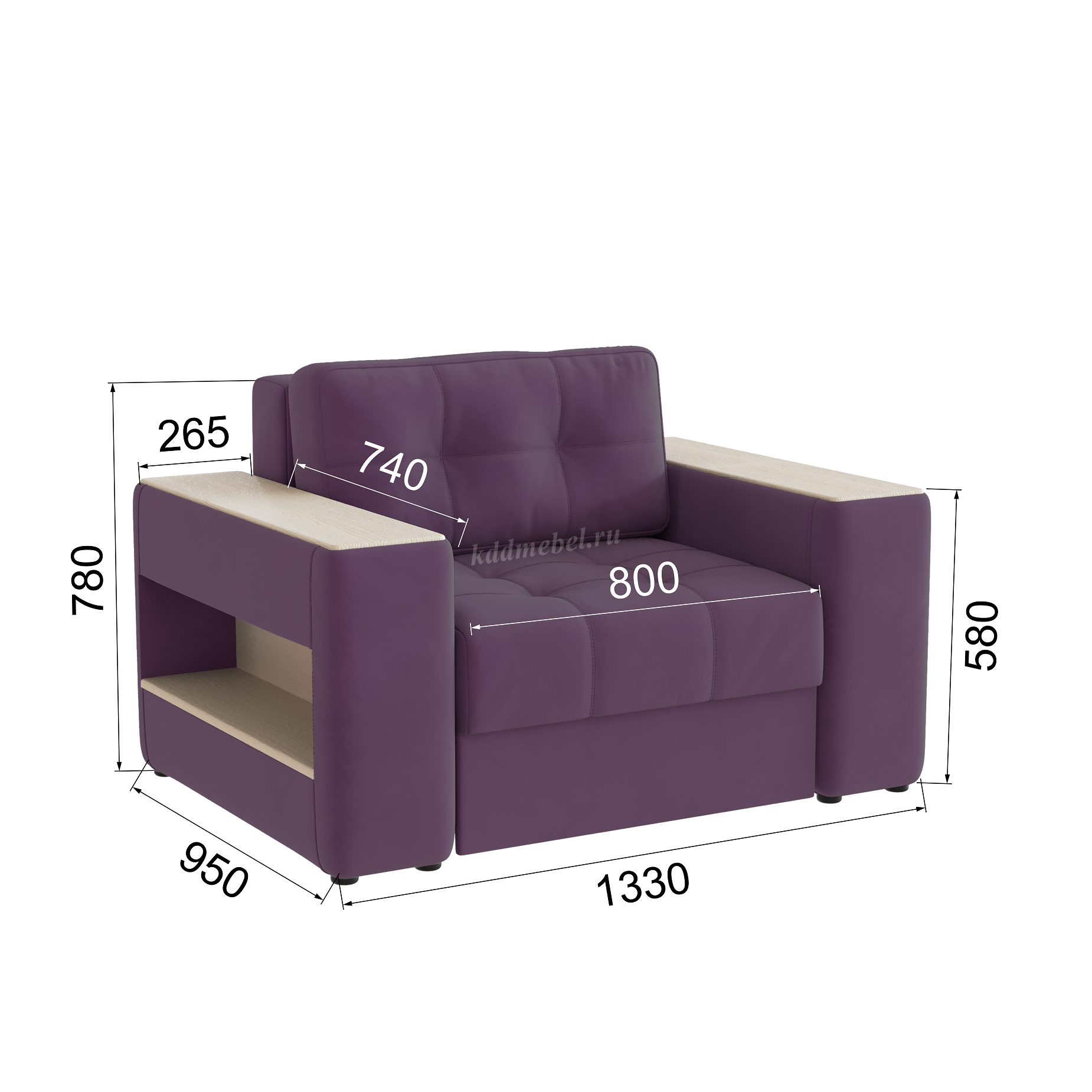 Подлокотники шириной 265 мм, обтянутые тканью и простеганные двойной отделочной декоративной строчкой.