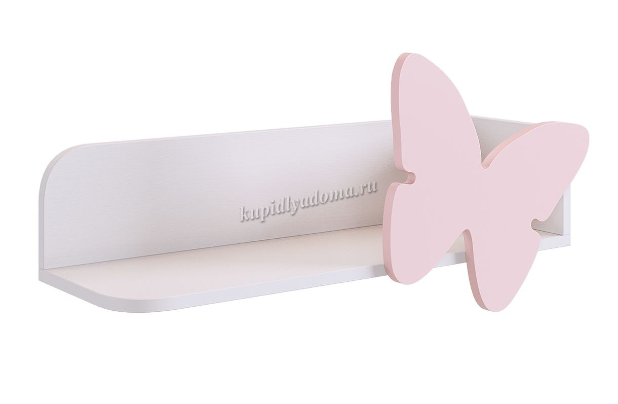 Полка навесная Бабочка (Белое дерево/Пудра розовая) наличие товара:
