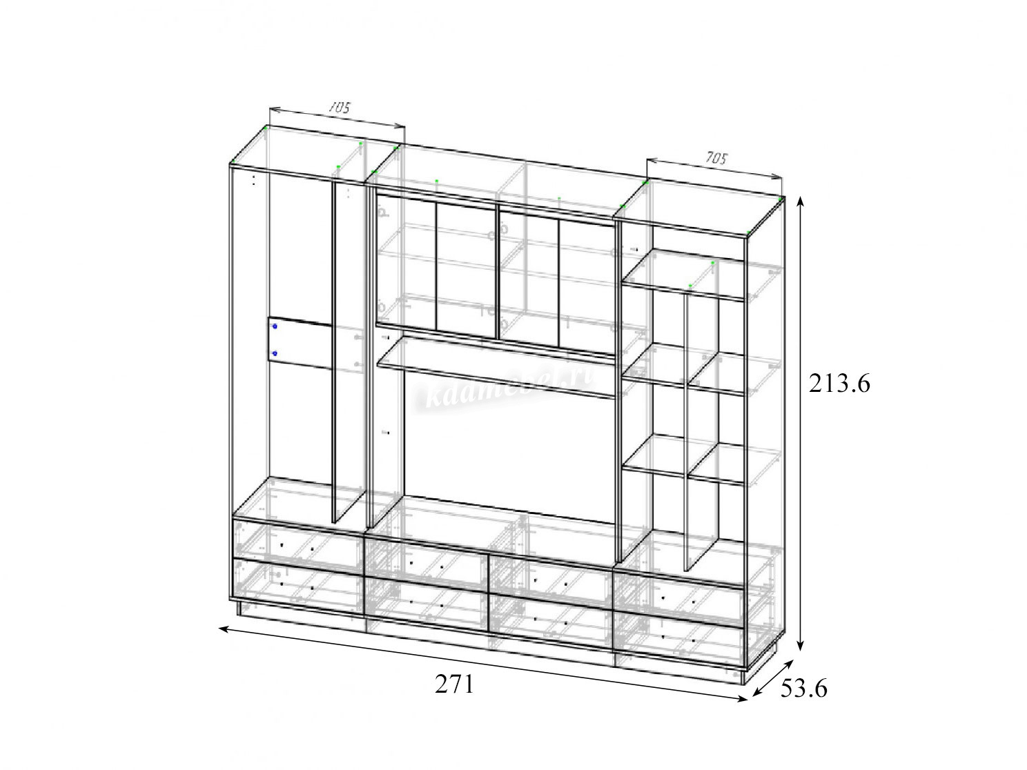 Размер ниши под ТВ: 1030 х 536 х 678