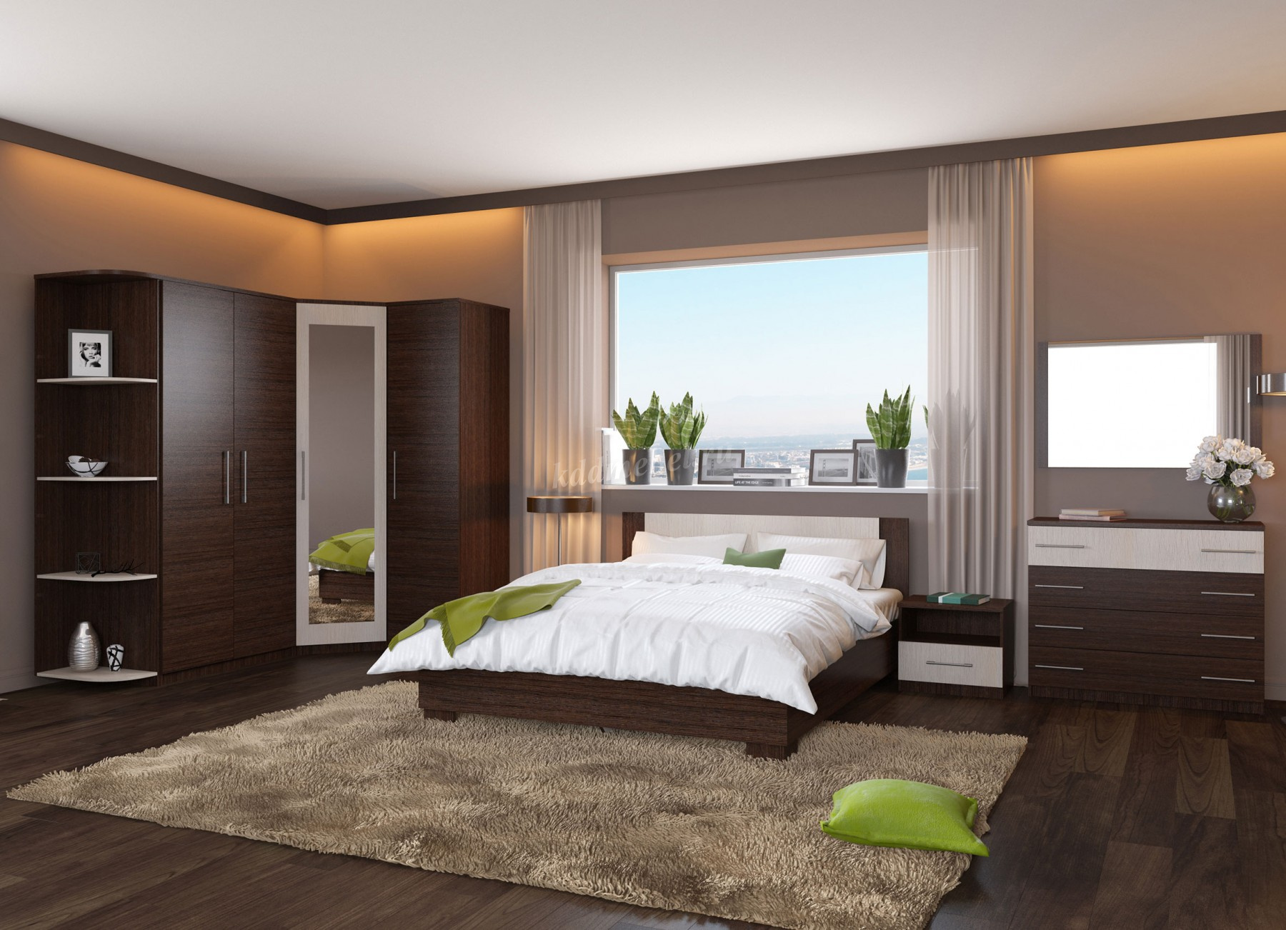 Аврора – это ХИТ продаж в Европе! Спальня выполнена в современном европейском стиле. Благодаря нейтральным оттенкам мебели, Вы сможете создать яркий и функциональный интерьер, отражающий ваши вкусы и предпочтения. 5 вариантов шкафов с вместительными полками и качественной фурнитурой позволяют создать полноценную систему для хранения.Система выполнена из высококачественных материалов.