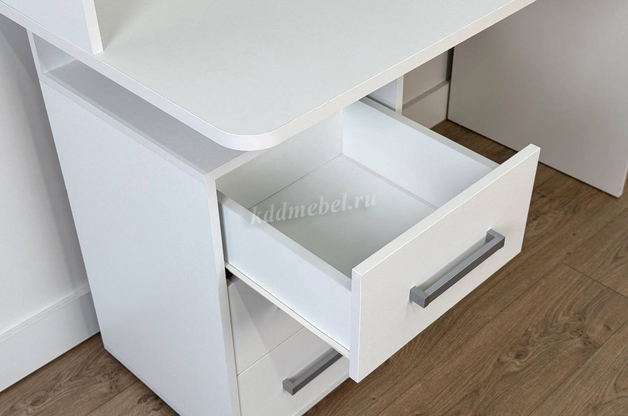 Компьютерный стол Лайт-2 идеальное сочетание функциональности и дизайна, которое превратит даже небольшое пространство в уютное и продуктивное рабочее место. Модель сочетает в себе стильные фактуры, удобные ящики на роликовых направляющих и практичные ниши для хранения документов и канцелярских принадлежностей. Скругленные углы столешницы делают использование стола безопасным.